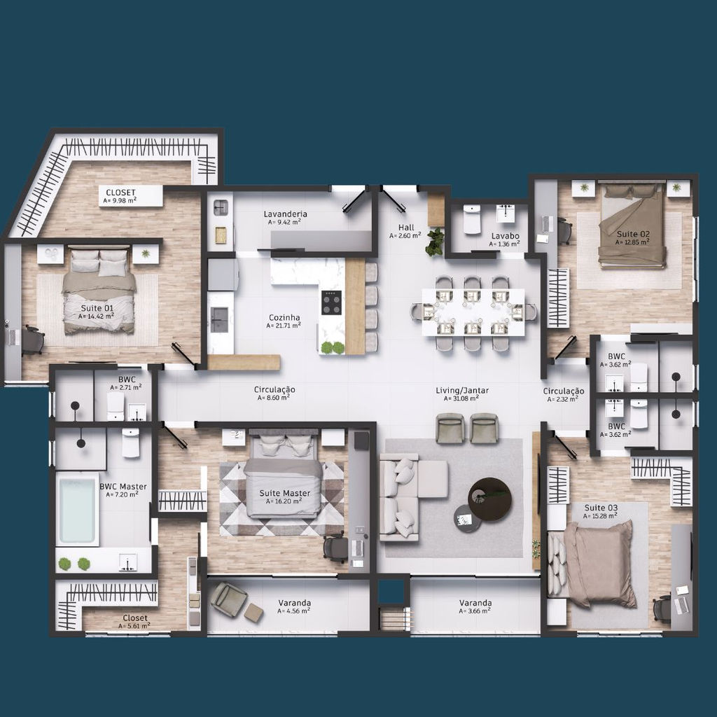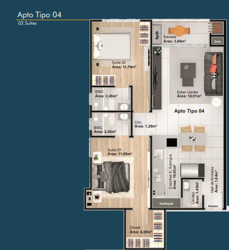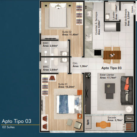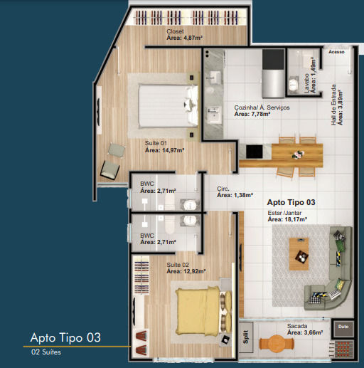 03 dormitórios de 105 m2 de área priv