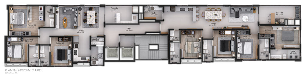 Piso porcelanato nas áreas comuns