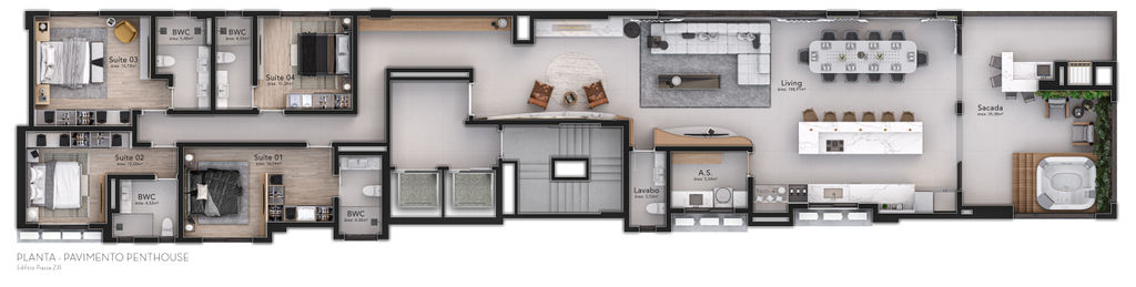 Banheiro da suíte master (tipo 01) com estrutura para 02 cubas e 02 chuveiros