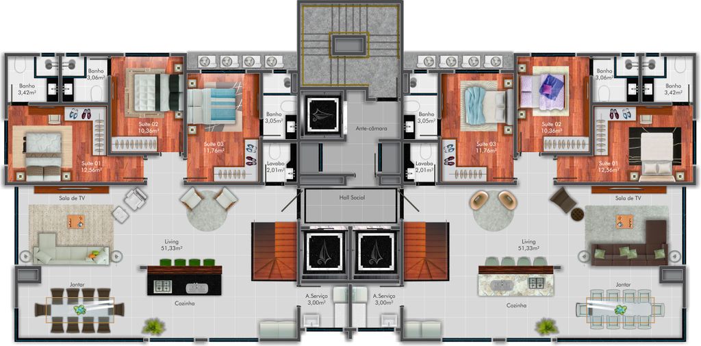 02 Apartamentos por andar