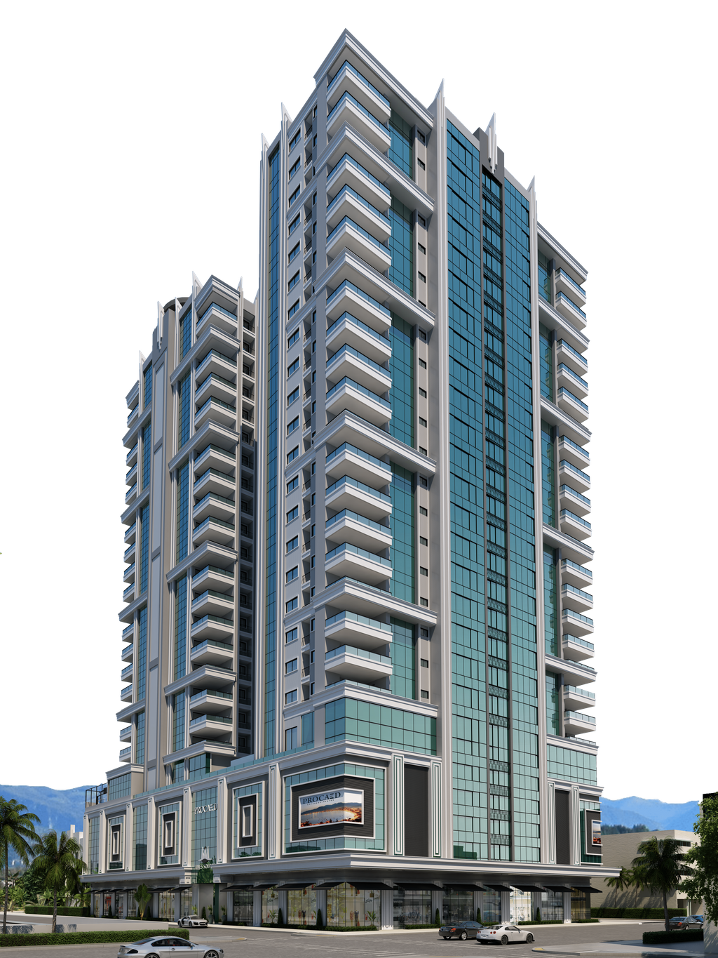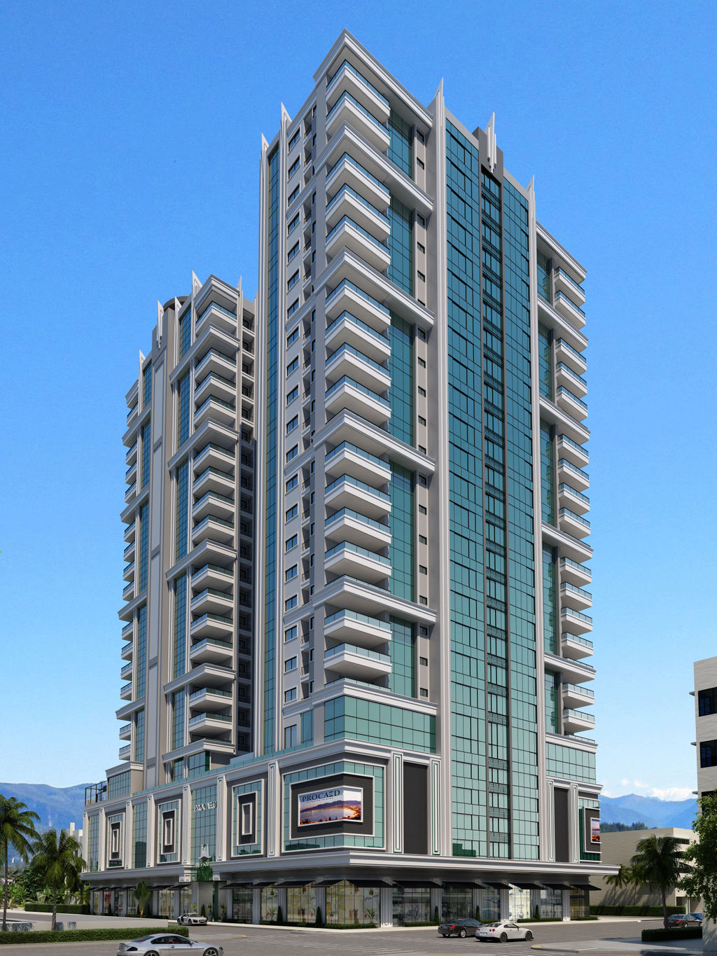 Revestimento externo com fachada Glassing, pastilha e grafiato