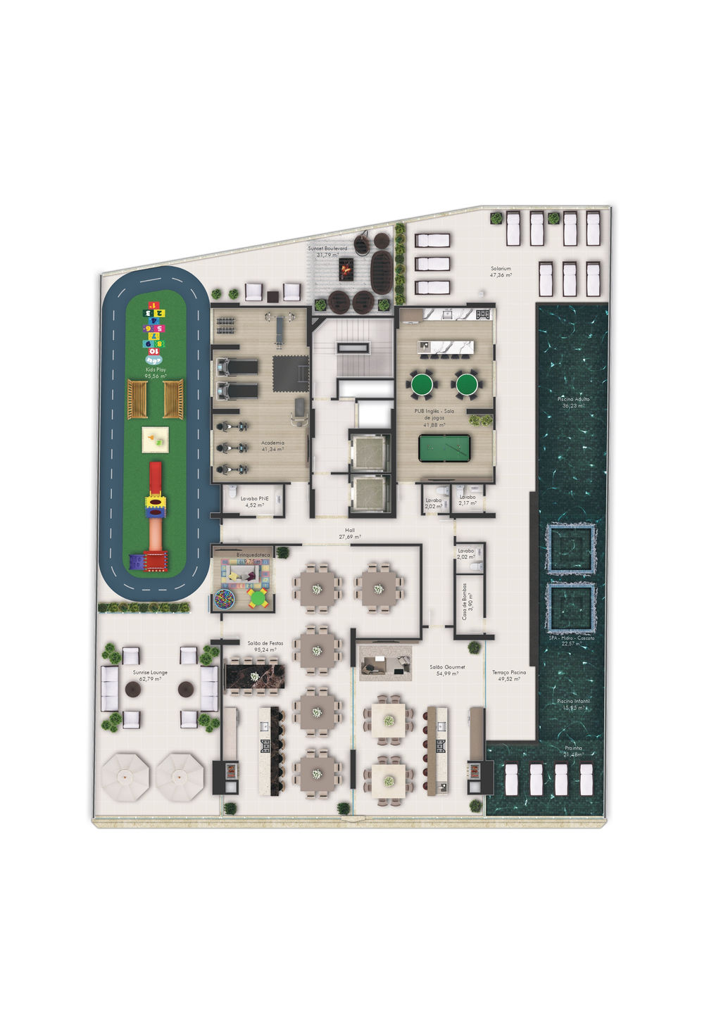 Área de lazer completa com 762m²