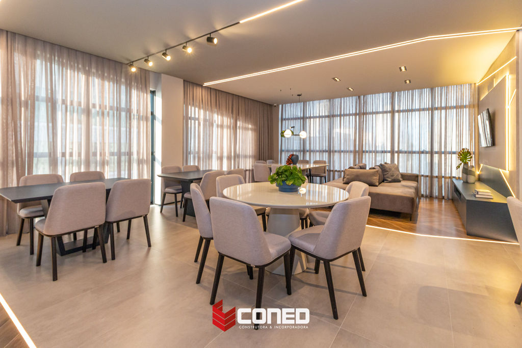 Hall de entrada e área de lazer decorados e mobiliados