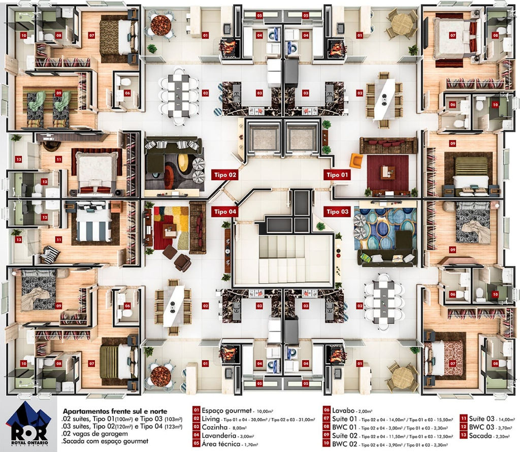 Apartamentos de 2 e 3 suítes