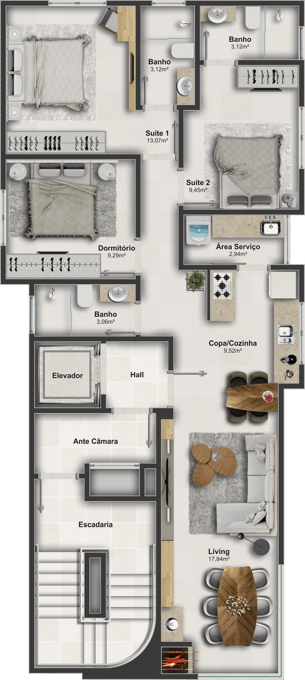 Área privativa do Apto: 87m²