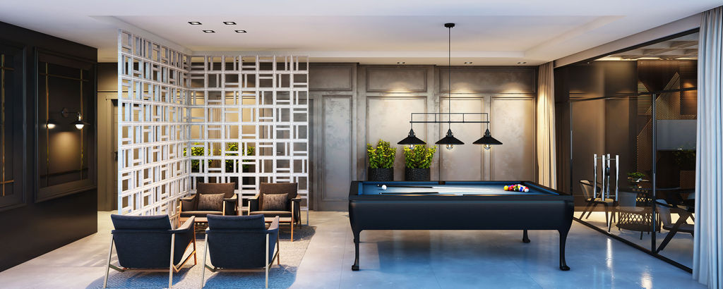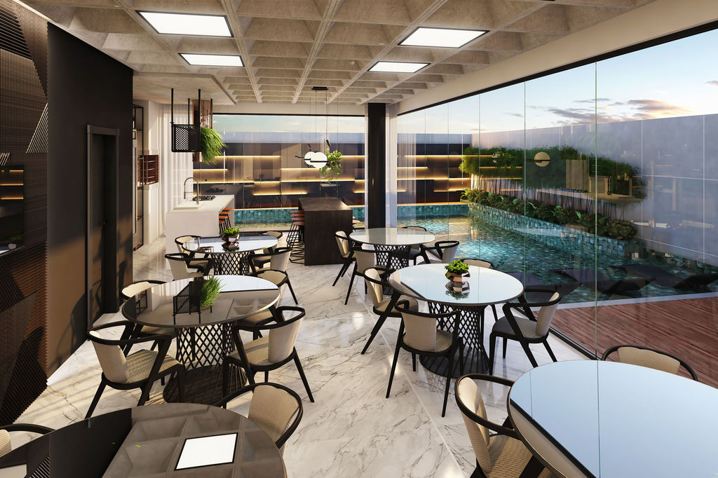 Áreas comuns decoradas e mobiliadas