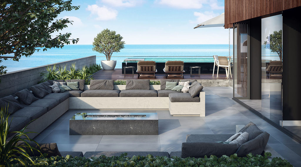 living e varanda frente mar,