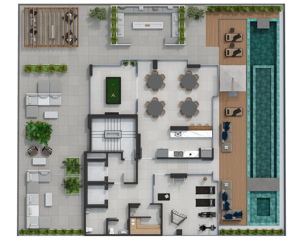 6º Pavimento com academia, salão de festas e jogos