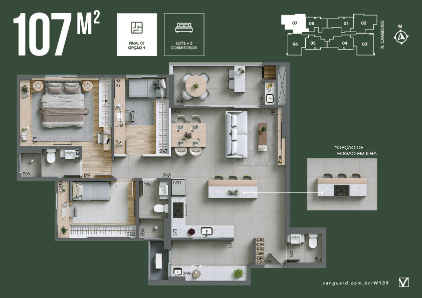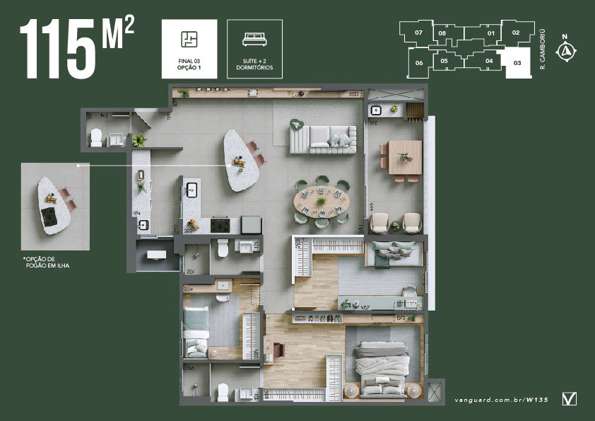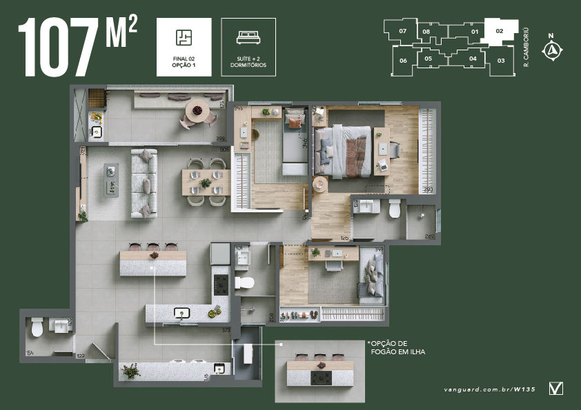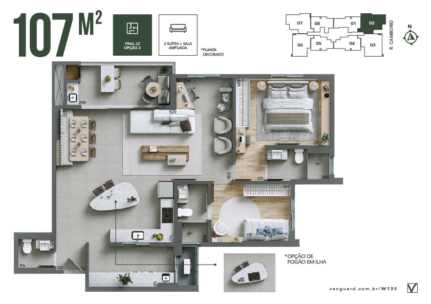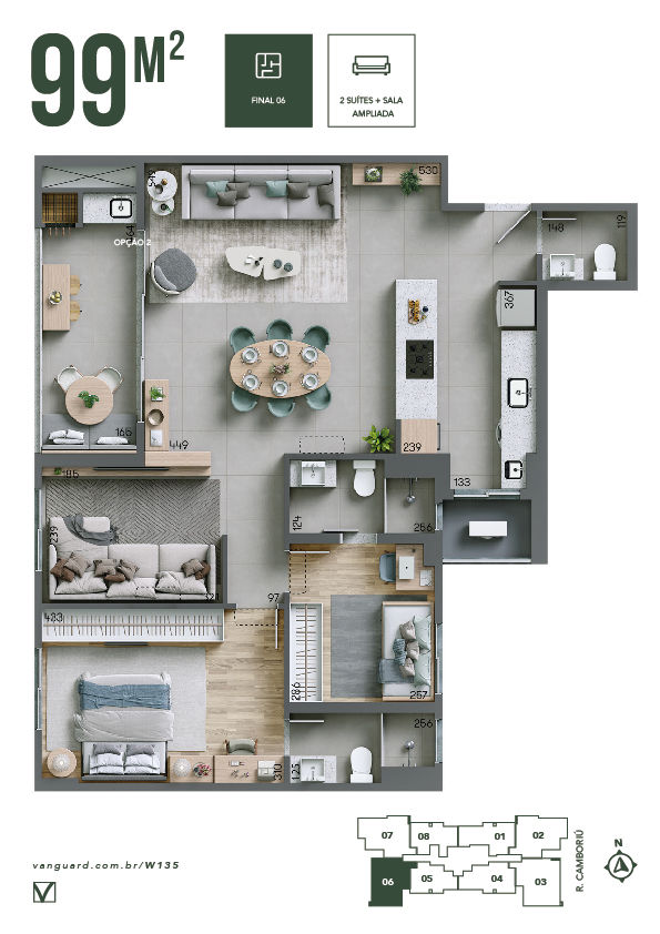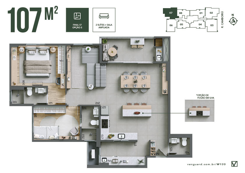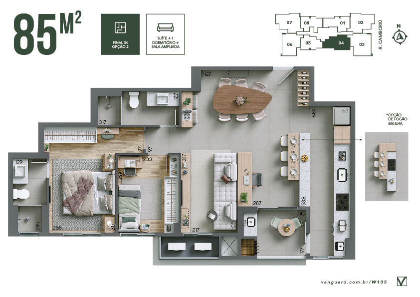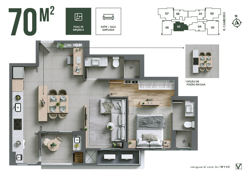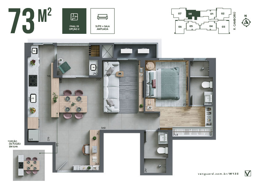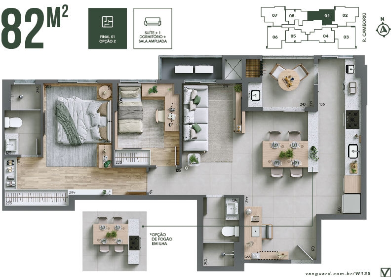 Opção de planta com sala ampliada