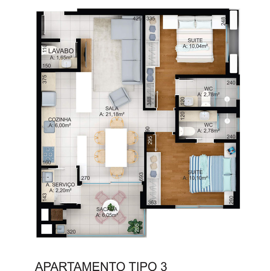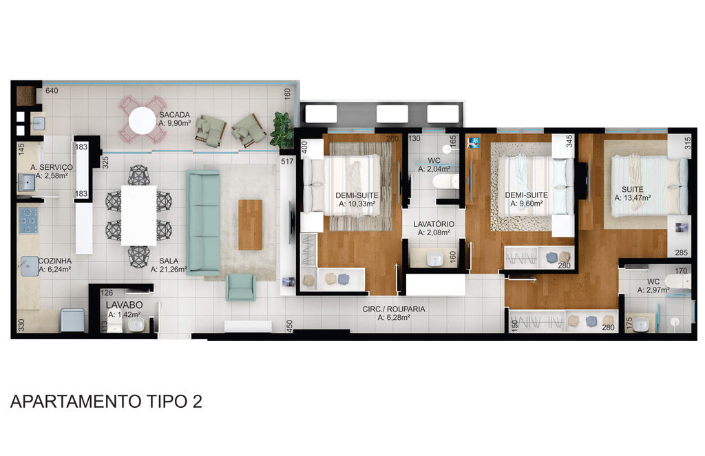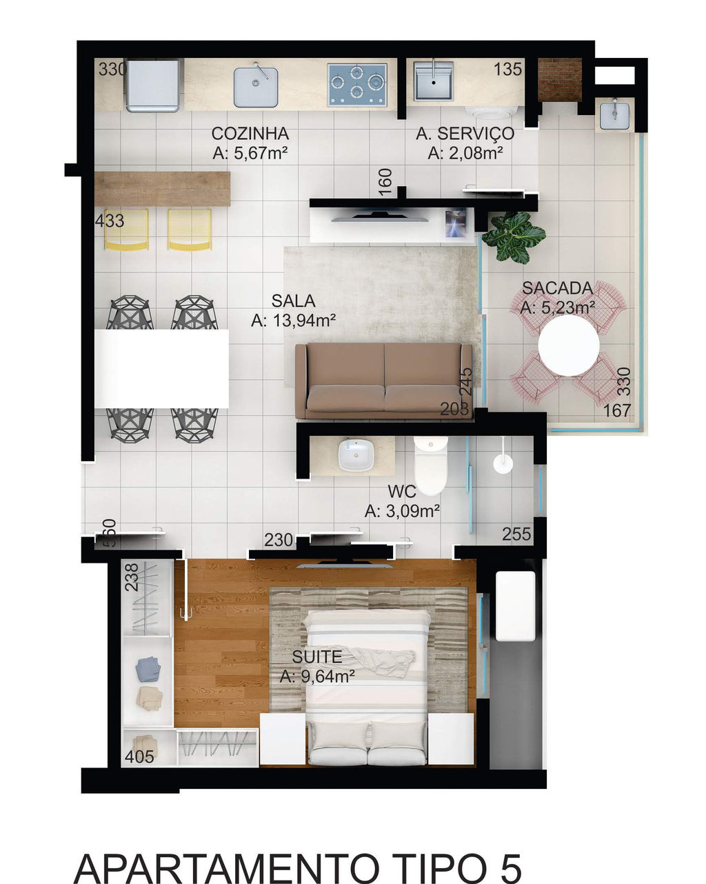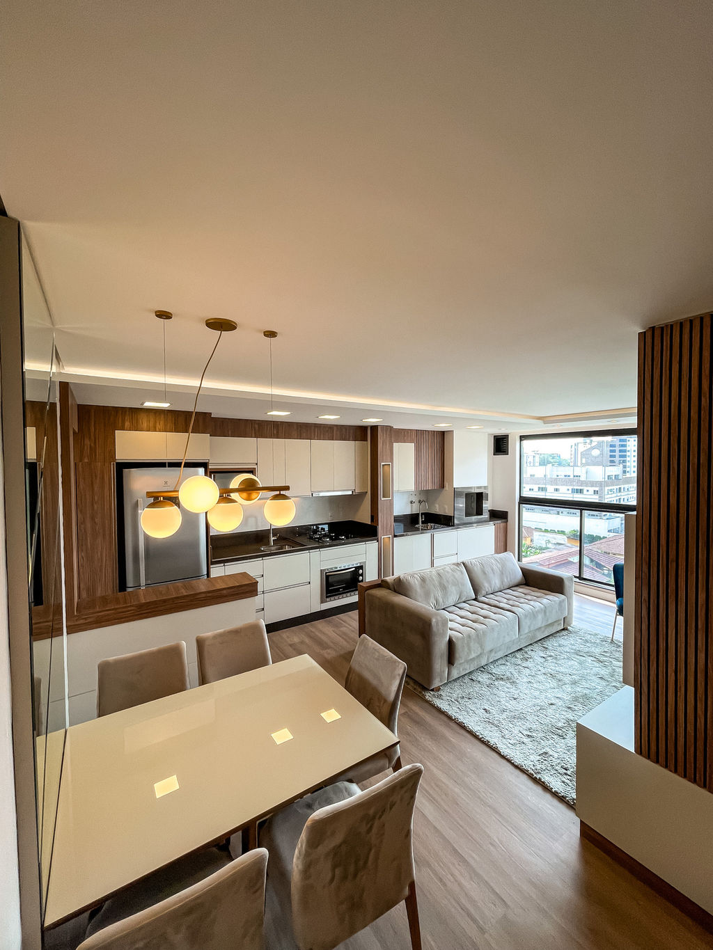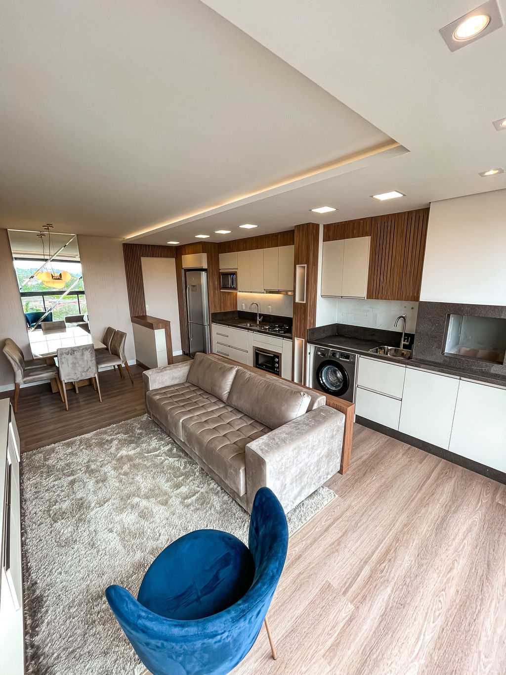 Piso vinílico ou laminado de madeira nas áreas secas e porcelanato nas áreas úmidas