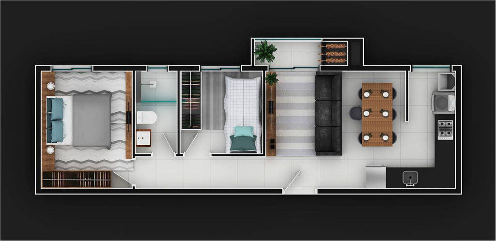 Tipo 1: 02 dormitórios, sendo 01 suíte