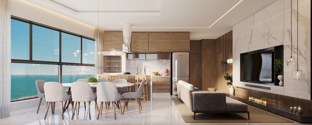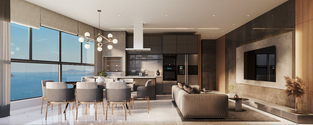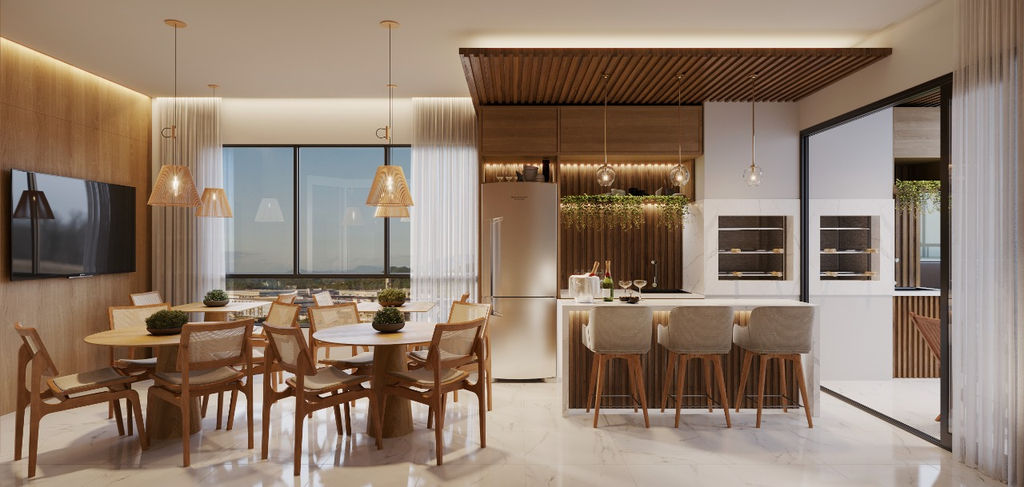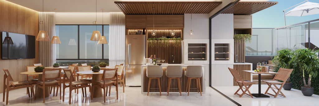Amplo living integrado com área gourmet