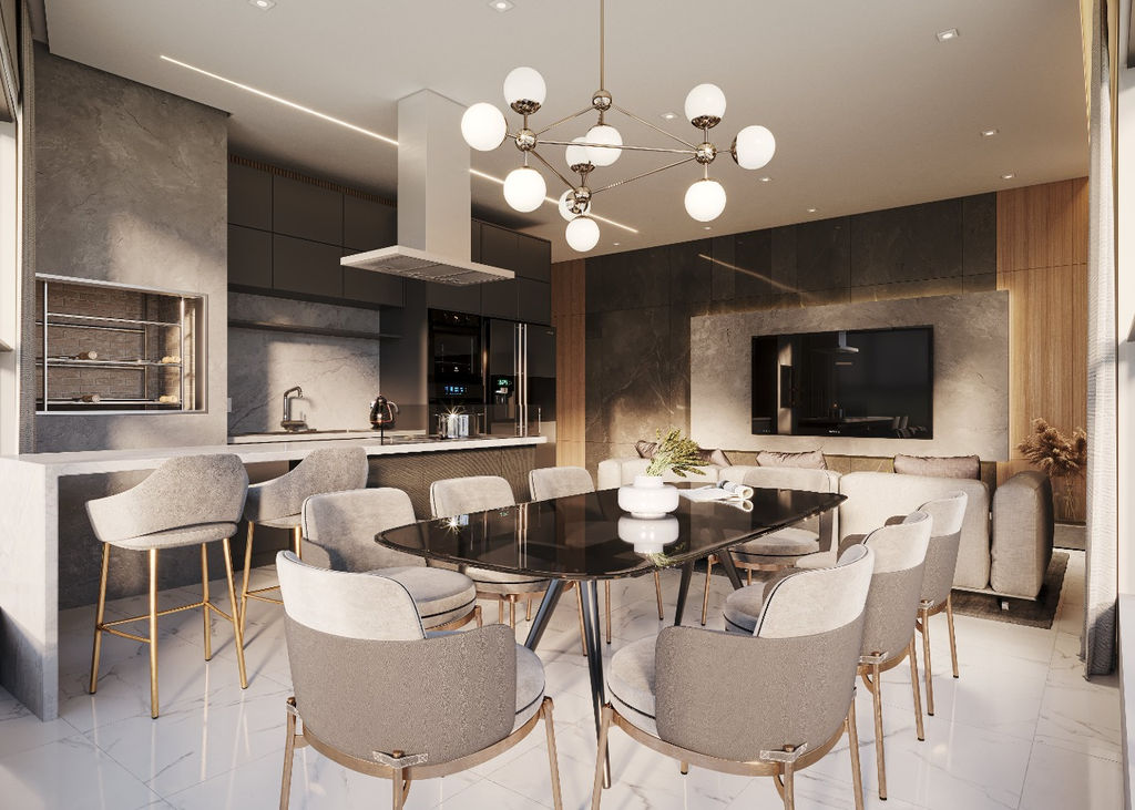Áreas sociais decoradas e mobiliadas