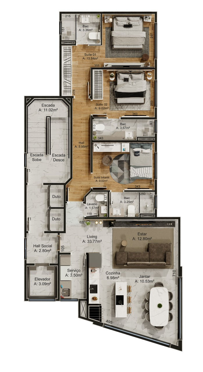 3 suítes