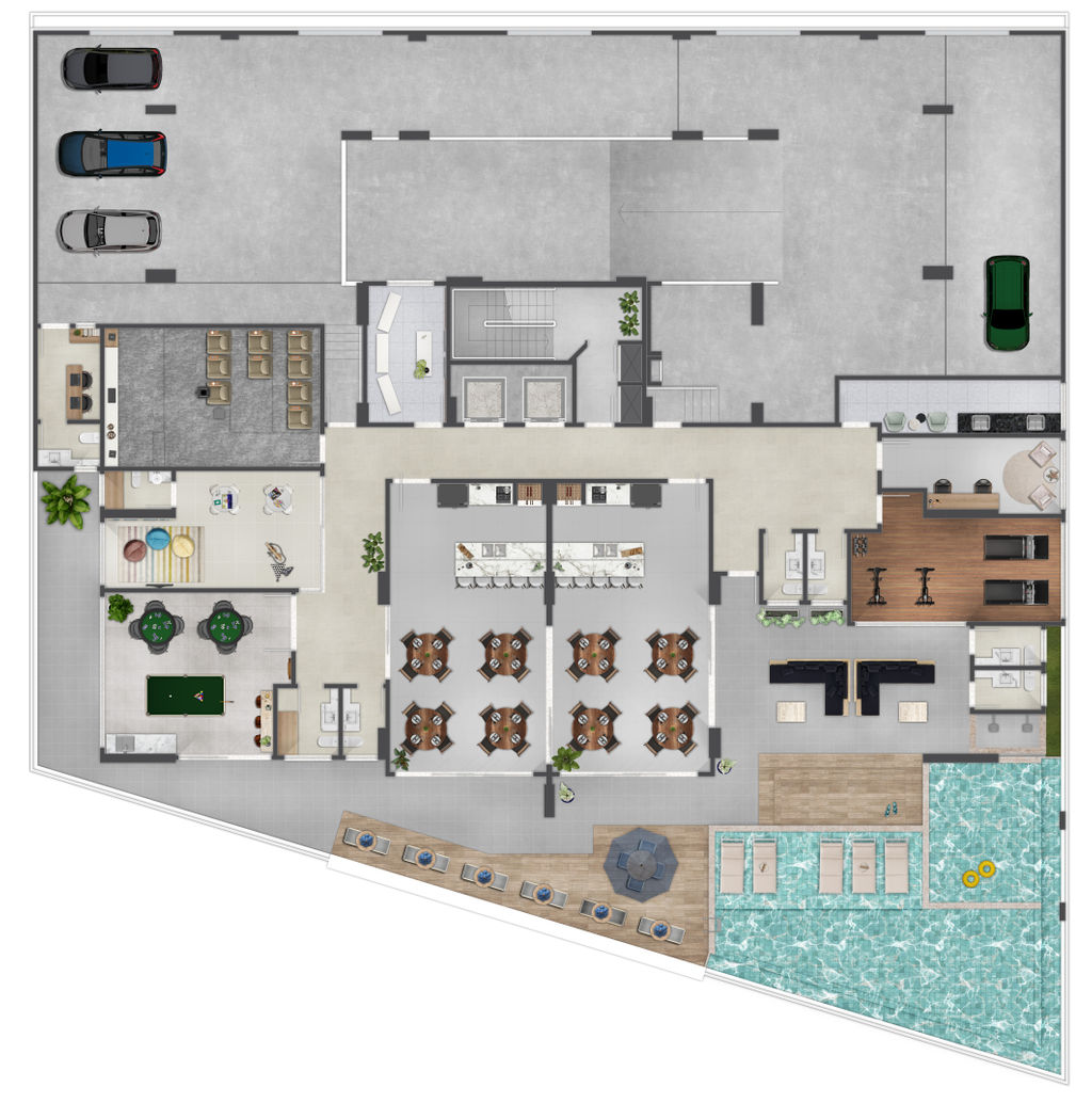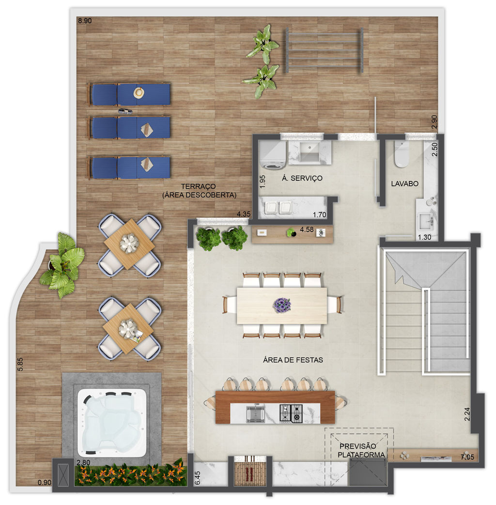 Área de lazer mobiliada e equipada (620m²)
