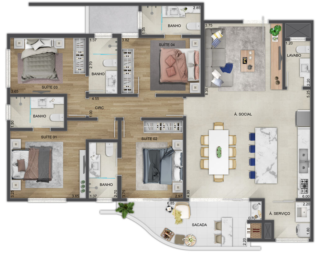 4 Apartamentos por andar