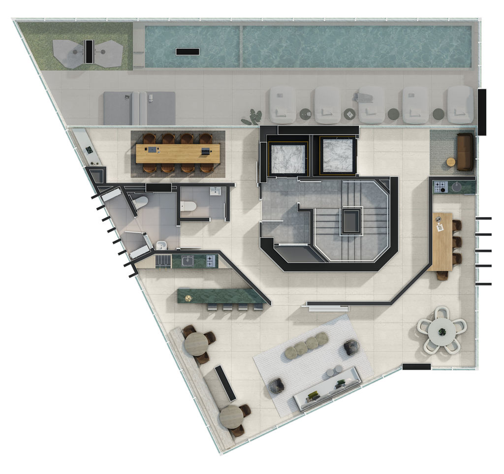 Projeto das áreas comuns desenvolvido pela Suíte Arquitetos
